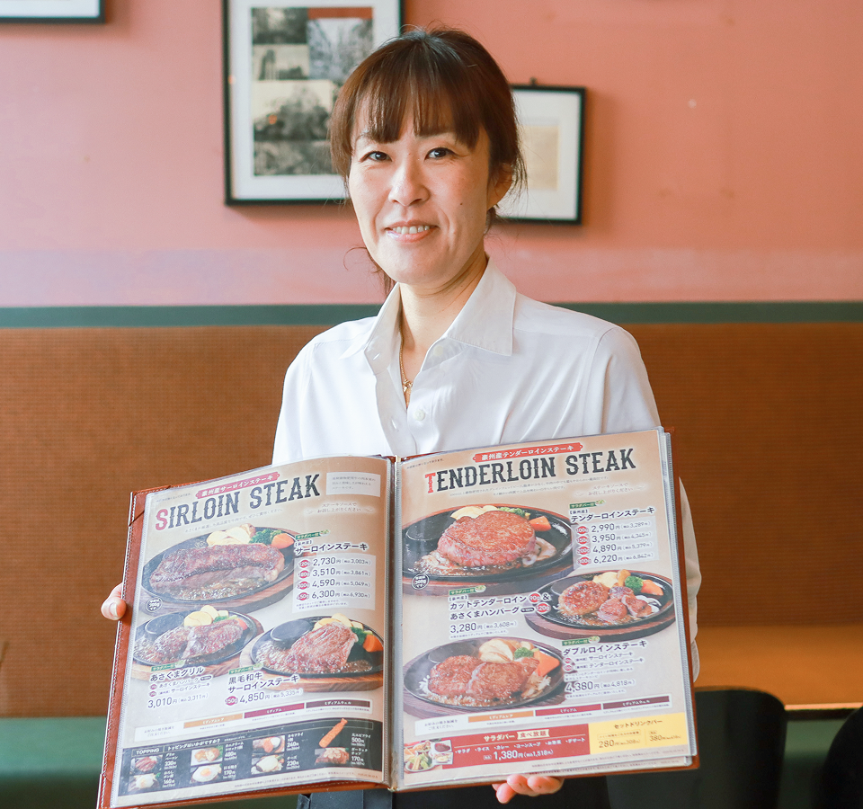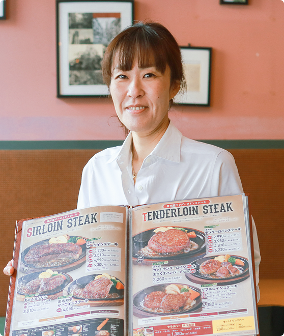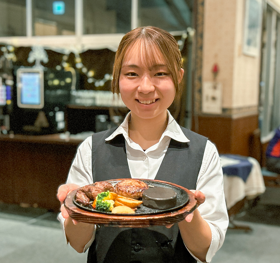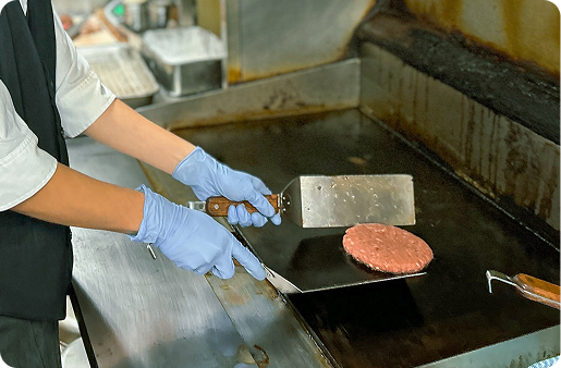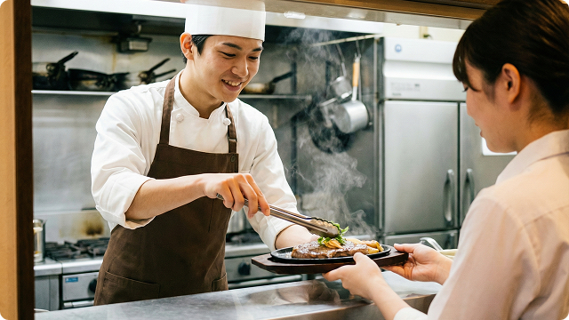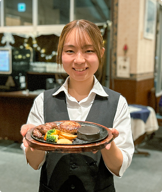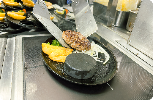 自慢のステーキやハンバーグを調理。プロの焼き技が自然と身に付く環境です。