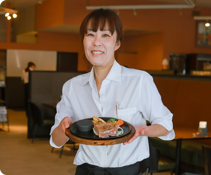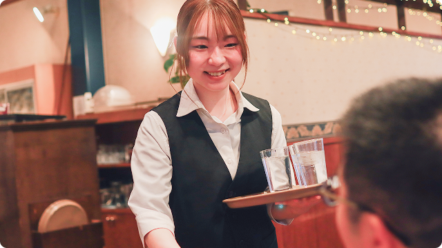 注文を確認し、焼きたてのお料理をテーブルまで丁寧にお届けします。