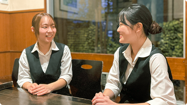 あさくまで働き始めた頃は、「ミスをしたらどうしよう」と不安でいっぱいでした。でも実際は、周りの先輩が常に気にかけてくれて、困った時にはすぐにフォローしてくれるので心強く、嬉しかったです。間違えても責めるのではなく、次に活かせるように優しく教えてくれる雰囲気があり、安心して働けています。初めてのバイトを、昔から利用している「あさくま」にして、本当によかったと思っています。