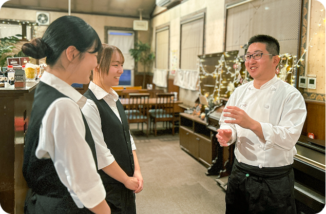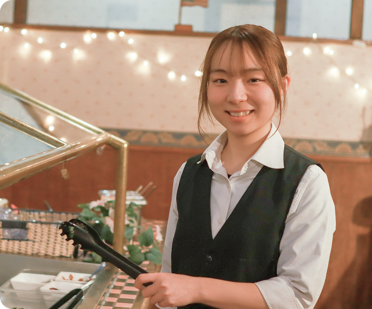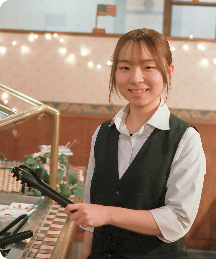 あさくまで働き始めた時、サラダバーやメニューの手順を覚えられるかすごく不安でした。でも、店長や先輩がポイントを絞って教えてくれるので、思っていたよりずっと覚えやすかったです。「まずは人気メニューから、次にサラダバー…」というように段階的に覚えていけるので、無理なく慣れることができました。自分で調理した料理をお客様が「おいしかった」と言ってくれて、働くのがどんどん楽しくなりました。